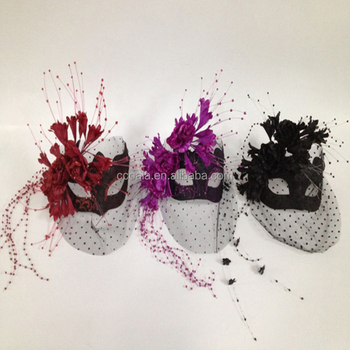 Sombreros de fiesta divertidos Máscara facial de Mardi Gras y cuentas Lentejuelas Máscara de Mardi Gras con flor en la parte superior